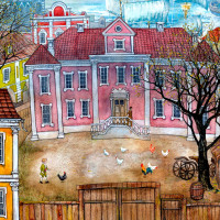 Шумели старые липы в сквере. Воздух был влажен и тепел. На куче песку, один во всем сквере, видимо уже давно, сидел маленький мальчик в грязной рубашке горошком и без штанов. Ветер поднимал время от времени его светлые и мягкие волосы. В руке он держал конец веревочки, к другому концу веревочки была привязана за ногу старая взлохмаченная ворона. Она сидела недовольная и сердитая и так же, как и мальчик, глядела на Скайльса.