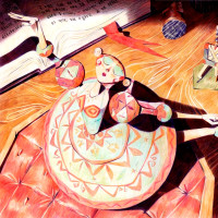 Большеглазая девочка закрыла лицо руками и быстро спряталась за полог.
