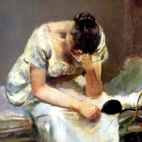Около кровати заплакал ребенок. Мать спросонья толкнула люльку и, сама борясь с дремотой, запела под жалобный скрип веревок старинную колыбельную песню: