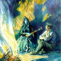 Но «сейчас» оказалось очень долгим временем. Большое бледно-оранжевое солнце повисло над краем степи, золотистая пыль встала над ярмаркой. Зазвонили к вечерне. И только тогда появился отец. Лицо у него было смущенное.