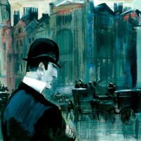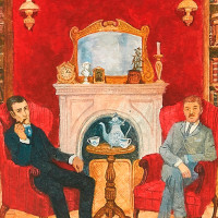 Я распрощался с ним, и мы условились, что зайду к шести часам вечера после обхода моих пациентов. Я немного запоздал, и была половина седьмого, когда я подходил к дому Холмса. У дома стоял какой-то высокого роста человек в шотландской шапке. Когда отворили входную дверь, мы оба одновременно вошли в комнату Холмса.