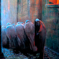 Потом я долго метался по незнакомым улицам, на которых не было фонарей, среди черных, точно вымерших домов, и никак не мог выбраться из их немого лабиринта. Нужно было остановиться и оглядеться вокруг себя, чтобы определить направление, но этого нельзя было сделать: за мною по пятам несся еще далекий, но все настигающий грохот и вой; иногда, на внезапном повороте, он ударял меня в лицо, красный, закутанный в клубы багрового крутящегося дыма, и тогда я поворачивал назад и метался до тех пор, пока он снова не становился за моей спиной. На одном углу я увидел полосу света, погасшего при моем приближении: это поспешно закрывали какой-то магазин. В широкую щель я еще увидел кусочек прилавка и какую-то кадку, и сразу все оделось молчаливой, притаившейся мглой. Невдалеке от магазина я встретил человека, бежавшего мне навстречу, и в темноте мы чуть не столкнулись и остановились в двух шагах друг от друга. Не знаю, кто был он: я видел только темный насторожившийся силуэт.