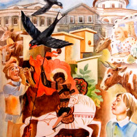 Мы смотрим на Москву и в распахнутые окна галдарейки, и через разноцветные стекла — голубые, пунцовые, золотые… — золотая Москва всех лучше.