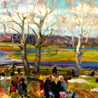 С папашенькой на гулянье, такая радость! В кои-то веки с ним, а то он все по делам, по рощам… А тут, все вместе, на двух пролетках, и Горкин с нами, — отец без него теперь не может. Все одеваются по-майски, я — в русской парусиновой рубашке, в елочках-петушках. Беру с собой кнутик со свисточком, всю дорогу буду свистеть, пока не надоем.