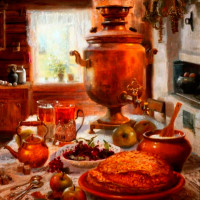 Он так гремит, — не хуже Кашина. И большой такой же, но веселый. Он рад, что хоть «крынкинской» паровой клубники удостоят опробовать. И вот, несут на серебряном подносе, на кленовых листьях, груду веток спелой крупнеющей клубники… — ну, красота!