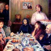 В зале зеркала закрыты простынями, а то усопший в зеркале будет виден, и будет за ним — еще… Большой стол, «для гостей», сдвинули углом, под образ «Всех Праздников»: положат на него усопшего. Теперь говорят — усопший, а не папашенька, не Сергей Иваныч. В этом слове, чужом, — мне чудится непонятное и страшное: тот свет, куда отошел отец.