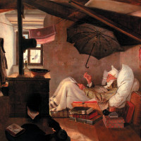 Я вздохнул еще глубже и поскорее поспешил проститься, потому что я ехал по весьма важному делу, и сел в кибитку. Тощие лошади, известные в Миргороде под именем курьерских, потянулись, производя копытами своими, погружавшимися в серую массу грязи, неприятный для слуха звук. Дождь лил ливмя на жида, сидевшего на козлах и накрывшегося рогожкою. Сырость меня проняла насквозь. Печальная застава с будкою, в которой инвалид чинил серые доспехи свои, медленно пронеслась мимо. Опять то же поле, местами изрытое, черное, местами зеленеющее, мокрые галки и вороны, однообразный дождь, слезливое без просвету небо. — Скучно на этом свете, господа!