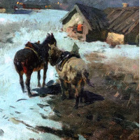 Хотел он на другую квартиру перейти, да так и не перешел, остался до осени. Утром морозным на крыльцо вышел Николка, хрупкую тишину ломая перезвоном подкованных сапог. Спустился в вишневый садик и лег на траву, заплаканную, седую от росы. Слышно, как в сарае уговаривает хозяйка корову стоять спокойно, телок мычит требовательно и басовито, а о стенки цибарки вызванивают струи молока.