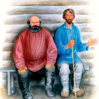 Александра Павловна дошла до деревеньки, остановилась у крайней избушки, весьма ветхой и низкой, и, подозвав своего казачка, велела ему войти в нее и спросить о здоровье хозяйки. Он скоро вернулся в сопровождении дряхлого мужика с белой бородой.