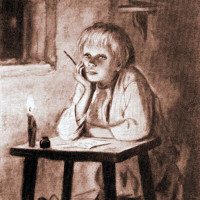 Но когда он возвращался с кладбища, его взяла сильная тоска. Ему что-то нездоровилось: дыхание было горячее и тяжкое, ослабели ноги, тянуло к питью. А тут еще полезли в голову всякие мысли. Вспомнилось опять, что за всю свою жизнь он ни разу не пожалел Марфы, не приласкал. Пятьдесят два года, пока они жилив одной избе, тянулись долго-долго, но как-то так вышло, что за всё это время он ни разу не подумал о ней, не обратил внимания, как будто она была кошка или собака. А ведь она каждый день топила печь, варила и пекла, ходила по воду, рубила дрова, спала с ним на одной кровати, а когда он возвращался пьяный со свадеб, она всякий раз с благоговением вешала его скрипку на стену и укладывала его спать, и всё это молча, с робким, заботливым выражением.