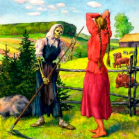 «Но через двадцать лет она сама пришла, измученная, иссохшая, а с нею был юноша, красивый и сильный, как сама она двадцать лет назад. И, когда ее спросили, где была она, она рассказала, что орел унес ее в горы и жил с нею там, как с женой. Вот его сын, а отца нет уже, когда он стал слабеть, то поднялся в последний раз высоко в небо и, сложив крылья, тяжело упал оттуда на острые уступы горы, насмерть разбился о них...