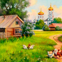 Пахнет горячими ватрушками, по ветерку доносит. Я сижу на досках у сада. День настояще летний. Я сижу высоко, ветки берез вьются у моего лица. Листочки до того сочные, что белая моя курточка обзеленилась, а на руках — как краска. Пахнет зеленой рощей. Я умываюсь листочками, тру лицо, и через свежую зелень их вижу я новый двор, новое лето вижу. Сад уже затенился, яблони — белые от цвета, в сочной, густой траве крупно желтеет одуванчик. Я иду по доскам к сирени. Ее клонит от тяжести кистями. Я беру их в охапку, окунаюсь в душистую прохладу и чувствую капельки росы. Завтра все обломают, на образа. Троицын день завтра.