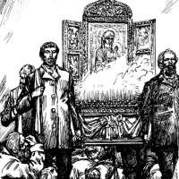 — Троица-то? А, небось, учил в книжке, как Авраам Троицу в гости принимал… Как же ты так не знаешь? У Казанской икона вон… три лика, с посошками, под древом, и яблочки на древе. А на столике хлебца стопочка и кувшинчик с питием. А царь-Авраам приклонился, ручки сложил и головку от страху отворотил. Стра-шно, потому. Ангели лики укрывают, а не то что… Пойдет завтра Господь, во Святой Троице, по всей земле. И к нам зайдет. Радость-то кака, а?.. У тебя наверху, в кивоте, тоже Троица.