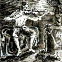 Лежит Васютка на топчане разомлевший, а мать и дедушка хлопочут около, простуду из него выгоняют. Мать натерла его спиртом, дедушка напарил каких-то горьких, как полынь, корней и заставил пить это зелье.