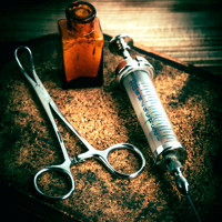 В трех комнатах занесенного снегом флигелька горели лампы с жестяными абажурами. На постелях бельишко было рваное. Два шприца всего было. Маленький однограммовый и пятиграммовый — люэс. Словом, это была жалостливая, занесенная снегом бедность. Но… Гордо лежал отдельно шприц, при помощи которого я, мысленно замирая от страха, несколько раз уже делал новые для меня, еще загадочные и трудные вливания сальварсана.